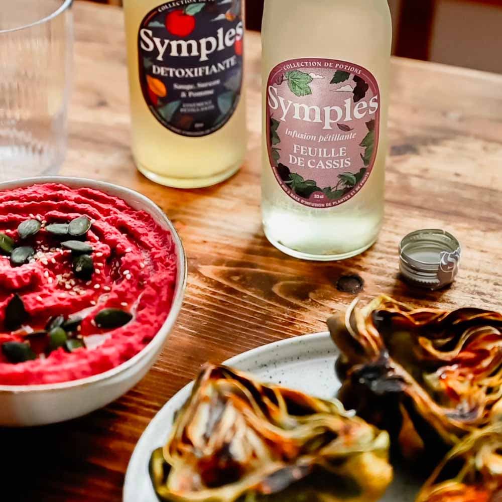 Nous vous recommandons d’essayer ce houmous à déguster en accord avec une Détoxifiante dont les saveurs rondes et gourmandes se marient à merveille au côté crémeux de ce dips.